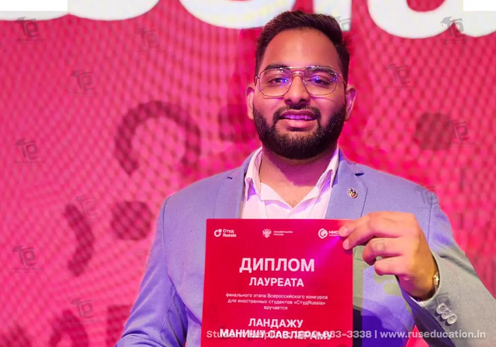 Among the finalists, Mari State University was proudly represented by Manish Landage, a 6th-year medical student and Chairman of the Foreign Students Council. Demonstrating confidence, professionalism, and strong leadership qualities, he earned the Diploma of Laureate in the prestigious category “Grand Prix – Best International Student (English Track)”.