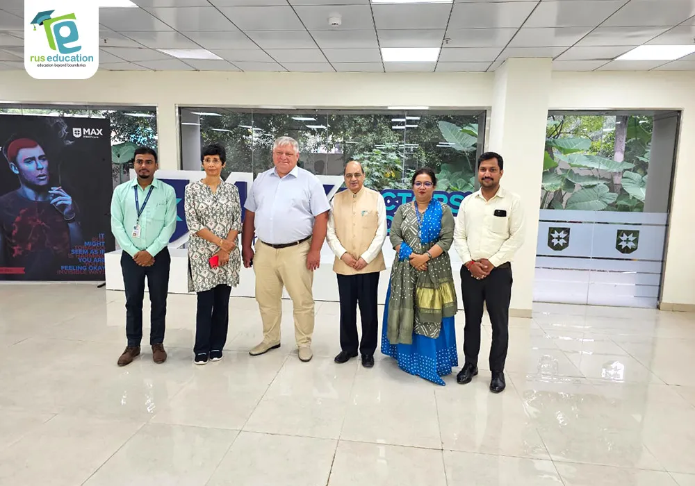 Esteemed Rector of Orenburg State Medical University, Prof. Igor Miroschnichenko, visited Max Healthcare in Saket on July 13, 2023, during his two-day visit to India. Accompanied by a delegation from Rus Education, he met with Dr. Vinita Mittal, General Manager of Academics at Max Institute of Health Care, and Dr. Sanjay, the Academic Coordinator.